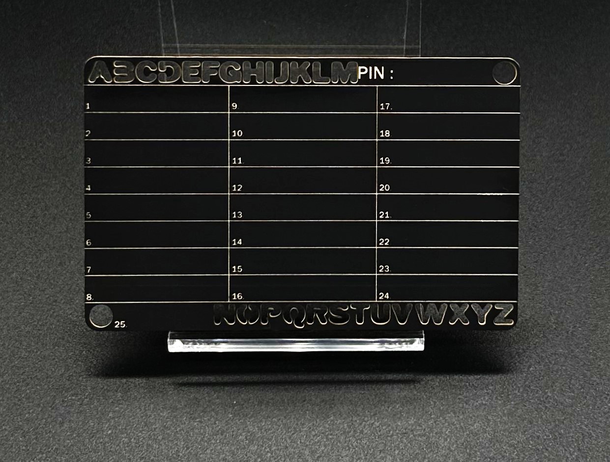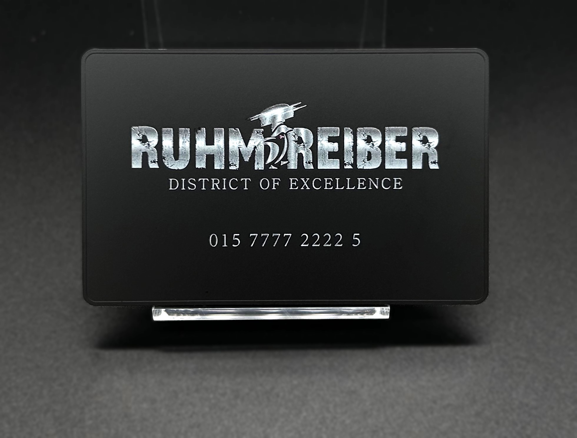 With this form of finishing, logos, lettering or pictograms are completely punched out. Cutout can only be used for metal cards and offers the advantage that the lettering can be seen from both sides. The design will be easily recognisable and is particularly useful for symmetrical characters.