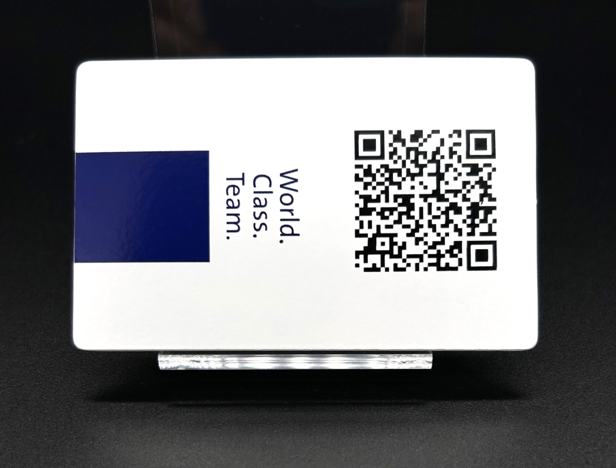 The counterpart to the QR code is the RFID chip The abbreviation RFID stands for Radio Frequency Identification. It is therefore identification via electromagnetic waves. The most commonly used RFID chip is the NFC (Near Field Communication). RFID chips have the advantage that they can passively store data and transmit it via a mobile phone. This data can also be recoded if the content needs to be changed. Perfect for contact data transfer, lock systems and individualised access via chip card.