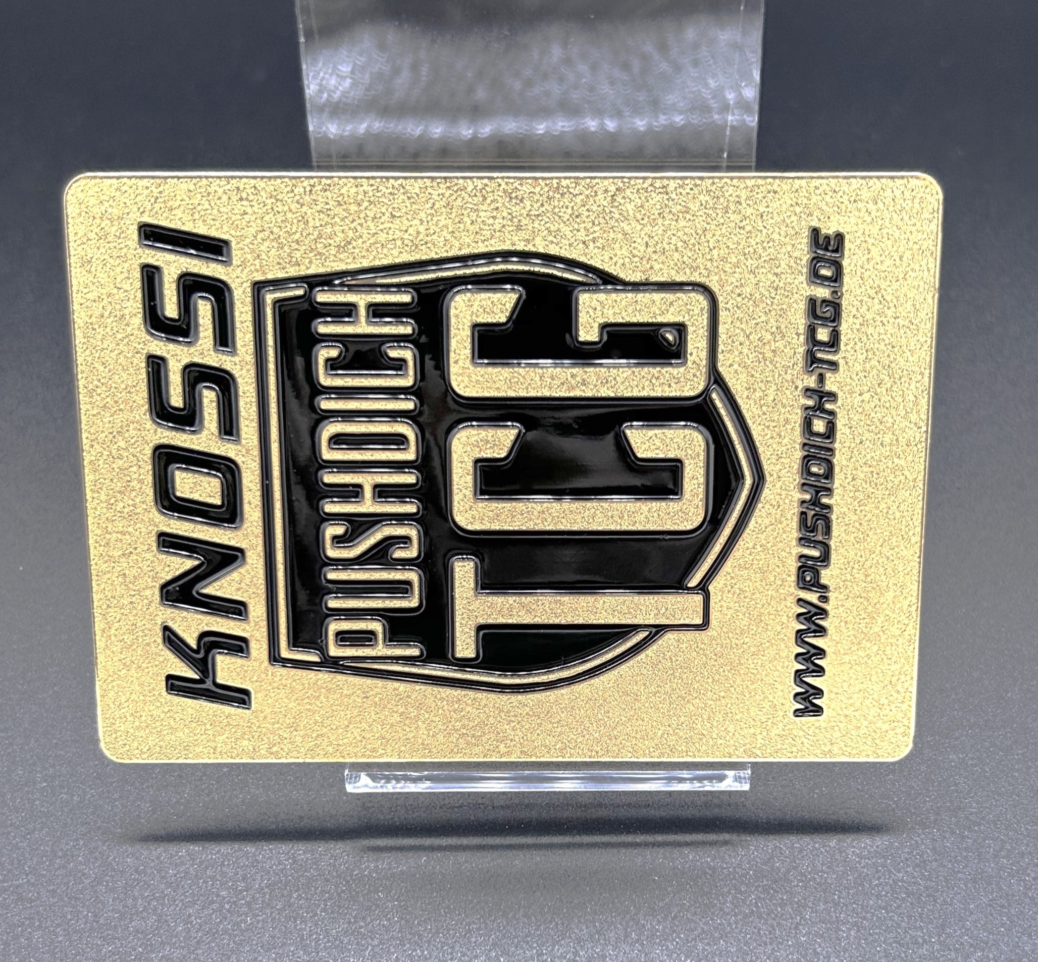 The embossing is the counterpart of the embossing. A thicker material is used here and the card is then milled out by around 0.1 mm. This allows the logo, lettering or pictogram to stand out from the card. Of course, this finish is not visible on the reverse.