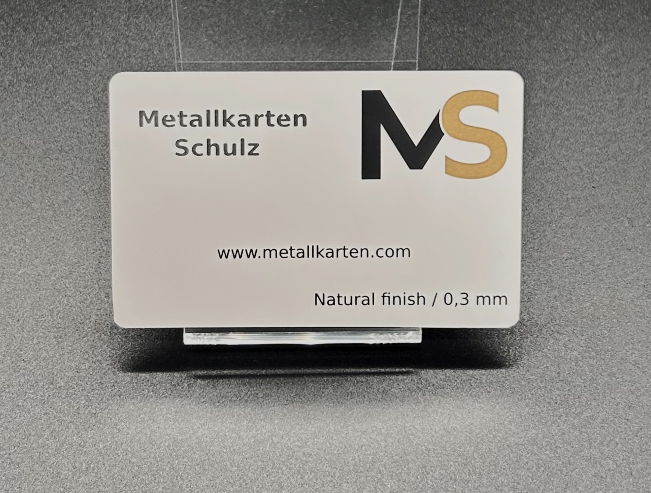 The untreated or matt surface goes very well with discreet and simple designs. This subtly conveys the value of such a metal card and adapts very well to different environments. Fingerprints are barely recognisable thanks to this finish. For cards with colour printing, the card can be produced with a matt or gloss finish.